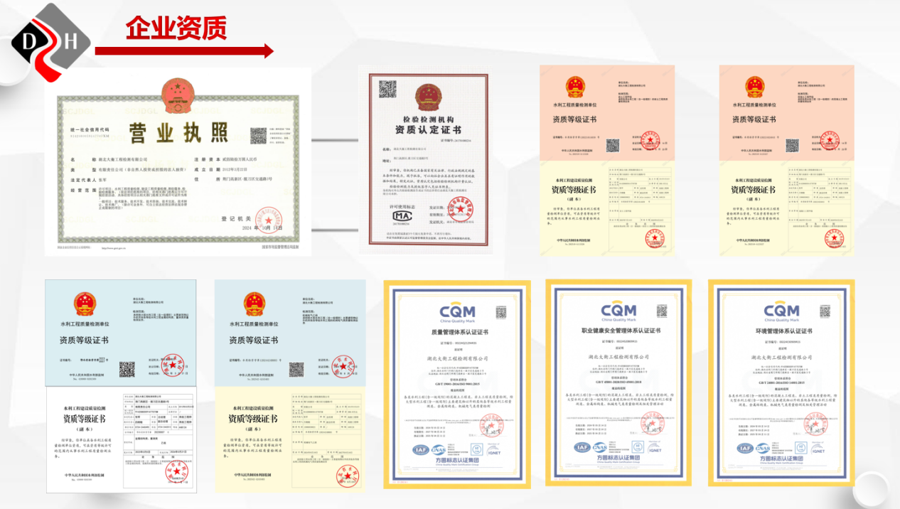 大衡公司持有湖北省市場監(jiān)督管理局評審中心頒發(fā)的CMA計量認(rèn)證證書(共340項(xiàng)參數(shù)),具有水利工程檢測資質(zhì)巖土、混凝土甲級;量測、金屬結(jié)構(gòu)和機(jī)械電氣類乙級。業(yè)務(wù)范圍涵蓋水庫除險加固、灌區(qū)續(xù)建配套與節(jié)水改造、泵站更新改造、堤防工程、河道治理、農(nóng)村安全飲水、土地復(fù)核等多個領(lǐng)域,連續(xù)四年承擔(dān)湖北省水利廳水利工程飛檢任務(wù),以誠信經(jīng)營與專業(yè)服務(wù)樹立行業(yè)口碑。